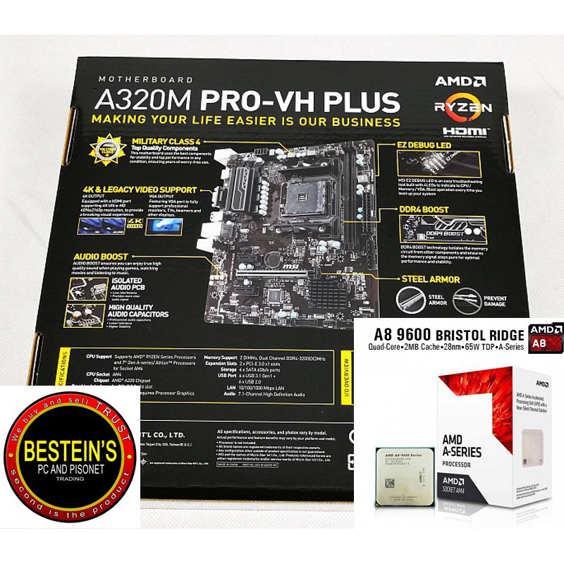 Amd A8 9600 7th Gen Apu Msi A320m Pro Vh Plus Am4 Micro Atx Motherboard No Hsf Shopee Philippines